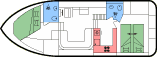 - Je 1 Doppel- oder 2 Einzekbetten in den beiden Heckkabinen