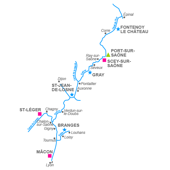 202 km, 26 Schleusen - SCEY SUR SAONE – PORT SUR SAONE – CORRE – FONTENOY LE CHATEAU – SCEY SUR SAONE